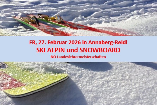 Die NÖ Landeslehrermeisterschaften SKI ALPIN und SNOWBOARD, werden heuer am Freitag, 27. Februar 2026 in Annaberg-Reidl stattfinden.